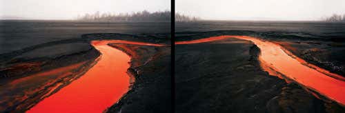 Near Sudbury in the Canadian province of Ontario mining nickel produces startling red streams of oxidised iron that resemble lava flows.