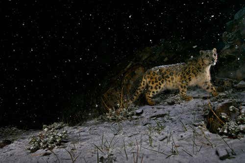 Checking his camera one freezing May morning, he found this snow leopard gazing back at him exactly in the place in the frame he had hoped it would be.