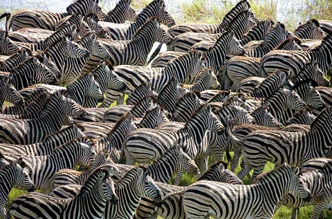 Zebras are adaptable grazers, able to feed on the longer, coarser grasses shunned by other herbivores, thus opening the grasslands to more choosy species such as wildebeest and gazelles. Zebras and wildebeest often associate with one another.