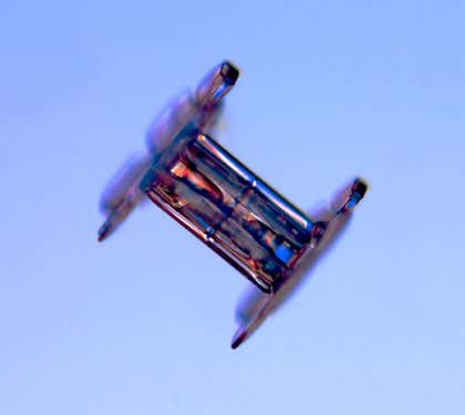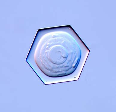 This is a snow crystal in its most basic form. Such crystals are usually so small that they can barely be seen with the naked eye.