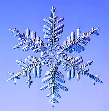 These are fairly large crystals, typically 2-4mm in diameter so easily seen with the naked eye. These are the most popular snow crystal type, seen in holiday decorations everywhere.
