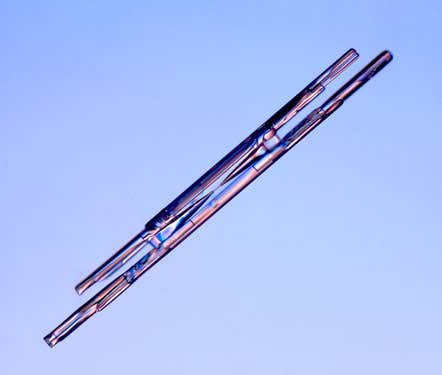 The result is two thin plate-like crystals growing on the ends of an ice column.