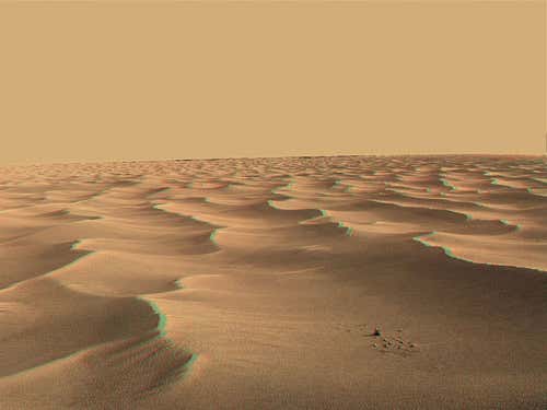 Mars is covered in sand. Here’s what it looks like up close in this Spirit Microscopic Imager sol 709 3-D photo from the “El Dorado” sand dune.