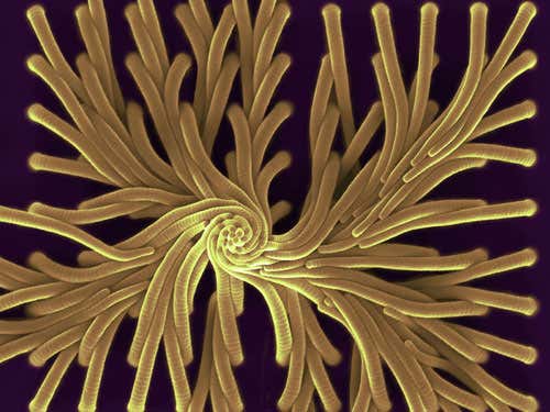 These neatly spiralled bristles may look like a biological structure, but they are actually human-made. Boaz Pokroy and colleagues at Harvard University have discovered it is possible to make the arrangements by submerging flexible polymer bristles in a liquid that is then evaporated.