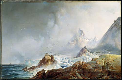 The iceberg gained popularity with many 19th-century artists as a symbol of the mysterious powers of the natural world.