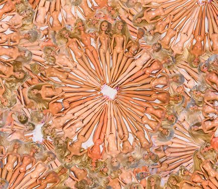 This image depicts 32,000 Barbies, equal to the number of elective breast augmentation surgeries performed every month in the US in 2006.