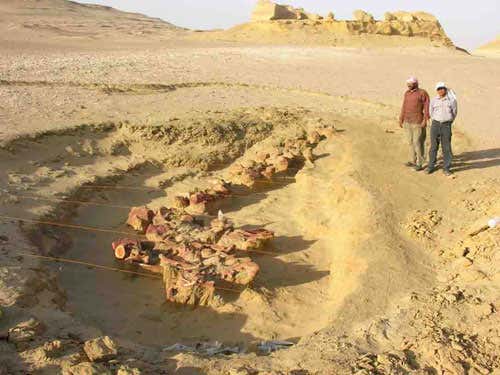 Another fossil skeleton, of the Basilosaurid Basilosaurus isis, skeleton was excavated in Wadi Hitan, Egypt, in 2005. Its skull was excavated in 1989 and is now on show at the University of Michigan Exhibit Museum. (Image: Philip Gingerich)