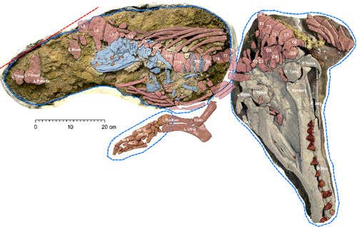 This virtually complete skeleton of Dorudon atrox, a Dorudontid, was excavated in Wadi Hitan, Egypt. (Image: Philip Gingerich)