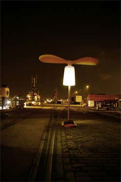 Dutch designers Demakersvan‘s outdoor lamp is perfect for summer evenings, they say. With a nod to the country’s windmill heritage, the lamp comes with its own twin propeller that generates energy for the lamp with every turn.