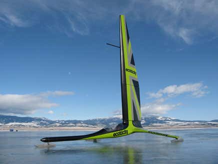 Greenbird is at home on ice and land, and is powered by wind alone. The project is the result of a partnership between UK green electricity company Ecotricity and engineer Richard Jenkins, who founded the Windjet Project. The team took Greenbird to Australia to break the land speed record for a wind-powered craft, but inclement weather prevented the attempt. Unbowed, the team has relocated to Montana where they will soon attempt to break the ice speed record.
