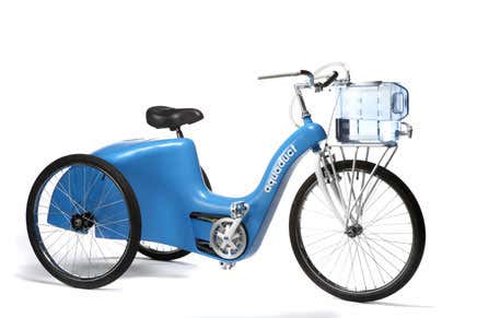 The IDEO Aquaduct concept vehicle kills two birds with one stone. It could provide those in the developing world with both transportation and a means to purify water. As the rider pedals, a pump attached to the pedal draws water from a holding tank and sends it through a filter to a smaller “clean” tank.