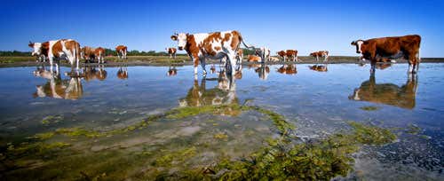 On a hot summer day, on a small island in Denmark, the cows are taking a footbath.
