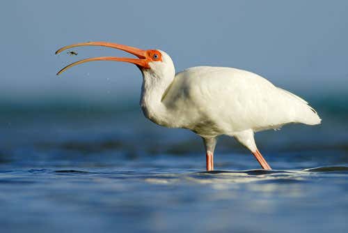 A white ibis feeding on the shore of Cay Caulker Island, Belize.