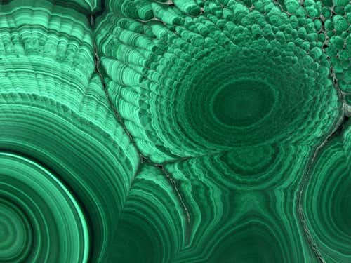 Malachite is another carbonate mineral, like rhodochrosite; specifically, it is copper carbonate.