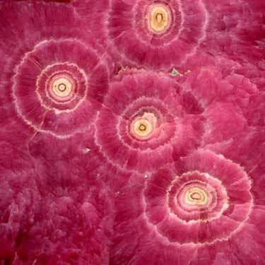 Rhodochrosite is made of crystals of magnesium carbonate. The pure form is rose red, but this is rare. Impure varieties are pink or brown.