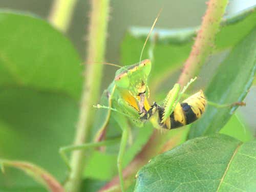He believes the mantis is eating the last piece of flight muscle from the thorax – the tastiest and most muscle-bound part of the wasp.