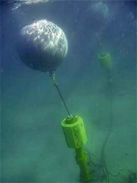 This buoy is part of a trial wave power plant near Fremantle, Western Australia.