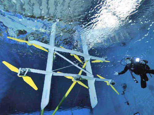 This 3-metre-tall scaffold, built by UK company company TidalStream, was recently tested in a pool in France.