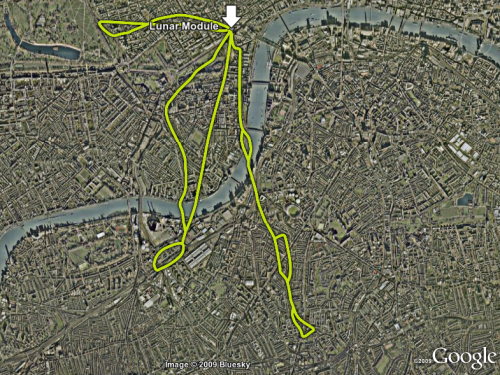 To make the scale of the missions more understandable, we’ve mapped the lunar excursions in the free program Google Earth. This gallery gives you a taste of the experience for London, but you can explore for yourself by downloading our Google Earth layers for London, New York, Los Angeles, Boston and Sydney.