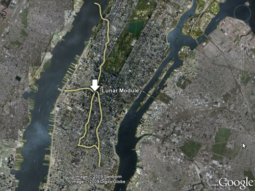 Download a Google Earth file to see how much ground all the Apollo astronauts would have covered had they landed in New York.