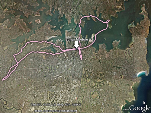 Download a Google Earth file to see how much ground all the Apollo astronauts would have covered had they landed in Sydney.