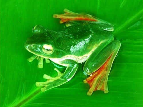 It is called a “flying frog” because its long webbed feet allow it to glide when falling.