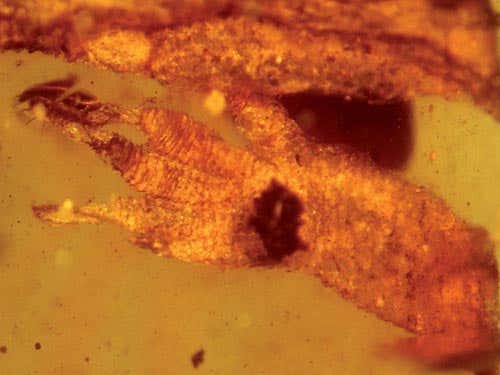 Vast numbers of plants and invertebrates are preserved in amber, but vertebrate fossils like this one are very rare.