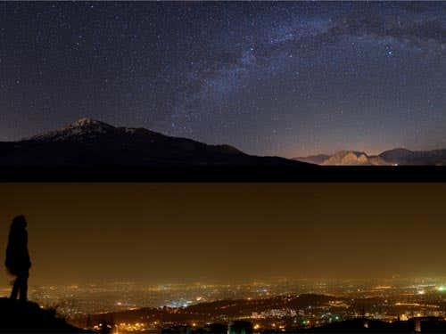 The effects of light pollution are clear in these two images taken at a dark site in northern Iran’s Alborz mountain range (top) and in the city of Tehran, just 65 kilometres away (bottom).