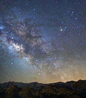 The Milky Way spills across the sky at dark sites like this one in the Tooran desert in eastern Iran. At least 250 billion, and possibly as many as a trillion, stars reside in our galaxy, which takes the shape of a disc 100,000 light years across. (Image: Babak Tafreshi)