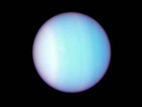 This 2003 Hubble true-colour image of Uranus taken with the advanced camera for surveys, with twin CCDs capable of 16 megapixels, shows the planet in more detail.