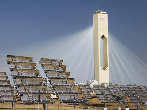 Built by Spanish company Acciona Solar Power, it is a solar thermal power station that uses 760 parabolic concentrators with more than 182,000 mirrors to concentrate the sun’s rays onto receiver tubes. These tubes are filled with oil, which is heated to 391 °C. This in turn boils water, and the steam is used to produce electricity.