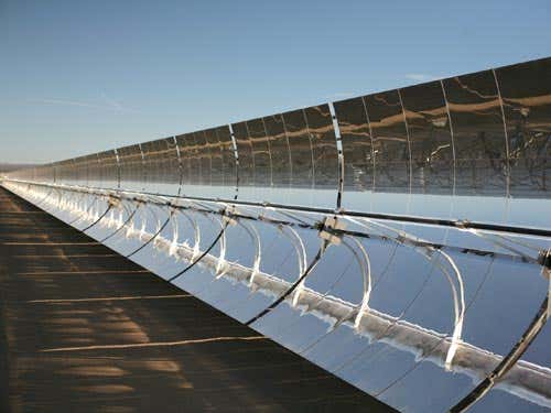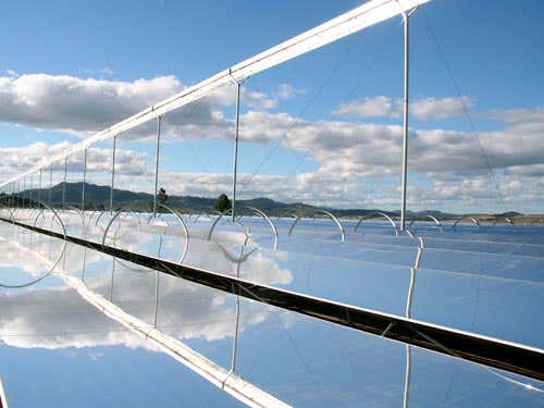 The plant replaces the usual trough-shaped solar mirrors with a series of narrow, flat mirrors called fresnel reflectors, which mimic the performance of a solar trough but at a reduced cost.