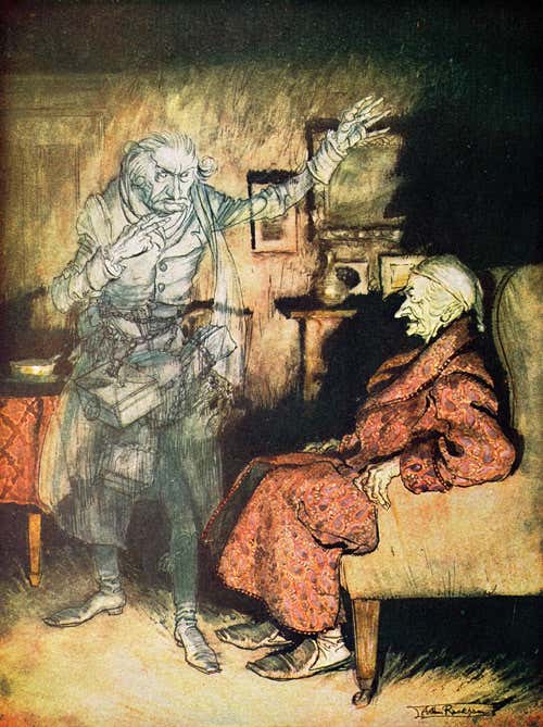 This illustration by Arthur Rackham was published in a 1915 edition of A Christmas Carol.
