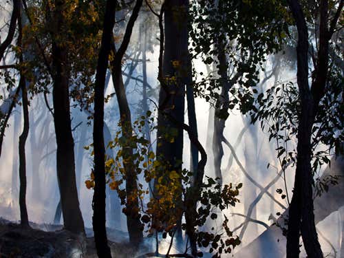 This smoky image shows a controlled burn taking place near Saint Andrews, north-east of Melbourne, in April, 2010. Controlled burning destroys excess leaf litter, which stimulates plant growth by allowing sunlight to filter through to seedlings. It also reduces the chance of uncontrollable wildfires during long, hot summers.