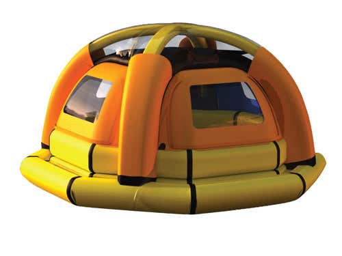 The raft also offers survivors protection from the sun.
