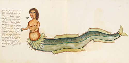 Fallours clearly didn’t meet any mermaids, so what was he playing at? “Fallours probably invented some of the extraordinary beasts he painted and bizarre stories to go with them in order to attract buyers and patrons,” says Pietsche.