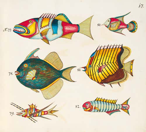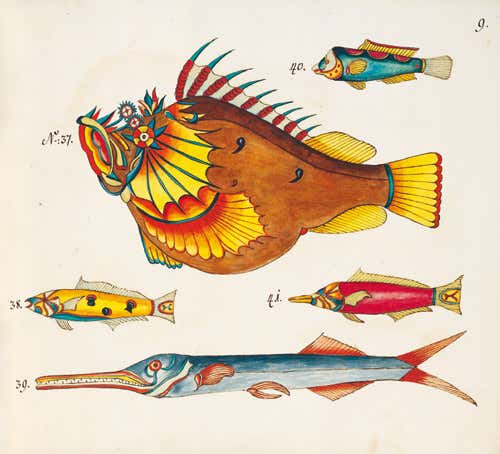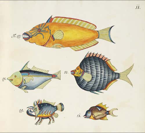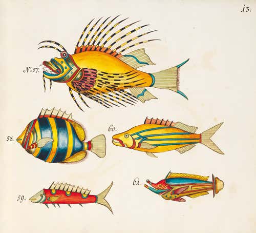 The paintings are valuable for another reason. “Ambon’s harbour is now heavily polluted with sewage, bottles, cans and plastic bags,” says Pietsche. “The kinds of fish that live there have probably changed significantly since Fallours’s time,” making this an invaluable if slightly whimsical record.