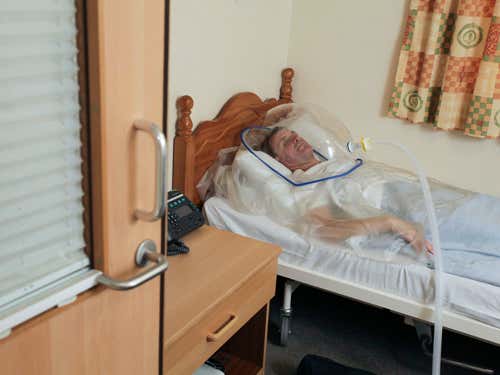 A human-sized calorimeter. Remember those experiments at school with calorimeters to measure the specific heat capacity of water and so forth? Well, here they’re treating me like a fossil fuel, seeing how much I burn overnight by turning oxygen and food into carbon dioxide that I breathe out. From that, they can work out how efficiently I’ve burned my fuel, and how much energy I’ve generated.