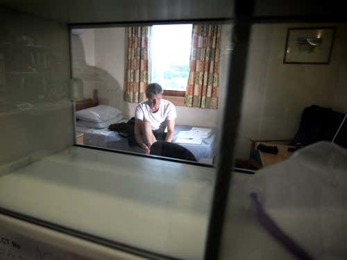 Some other participants are kept in the cold. Presumably they will burn off more than me to keep warm. And if the spicy capsule given to the second experimental group works as hoped, so will those participants. Because absolutely everything I produce is saved and measured, including all my urine, I freak out about whether breaking wind will make the room uninhabitable by dawn. But later I’m told it’s all part of the experience. Well, here we go. I’m in for the entire night. Nice view of the car park if I get bored.