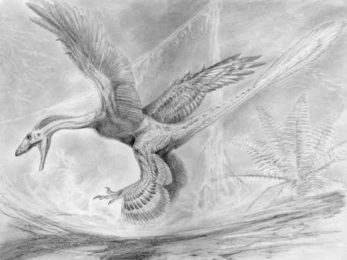 Xu and colleagues suggest early ancestors of the bird-like dinosaur may have used their hind wings for gliding but later lost the ability to glide, though they retained their long feathers for display. The fossil was uncovered in Inner Mongolia and described by Xu in 2005.