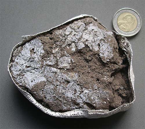 It’s hard to imagine life without somewhere to lay your head, and our ancient ancestors seem to have felt the same way. In 2011 archaeologists found a 30-centimetre-thick layer of compacted rushes and reeds in a cave called Sibudu, near the Uthongathi river in South Africa: this photo shows the remains of leaves from the find. Dating to 77,000 years ago, it appears to have been used for sleeping on and, at 2 square metres in area, it probably slept an entire family.