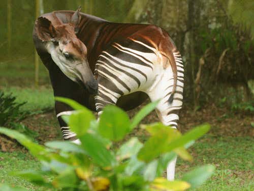 The giraffe’s closest living relative is the okapi, a shy creature that more closely resembles a zebra. It is confined to dark, wet forests of the Democratic Republic of the Congo, for which its stripy camouflage “stockings” are well suited.