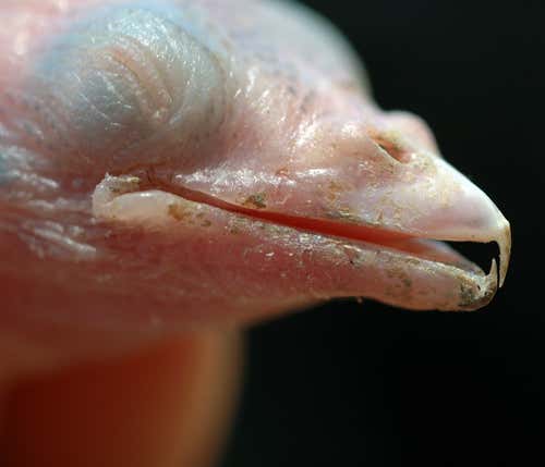 Newly hatched greater honeyguide chicks emerge into pitch darkness, inside a tunnel dug by another bird where their mother has left them. They will soon be joined by the host bird’s own chicks when they hatch. If this was a slasher movie, now would be the time to cover your eyes.