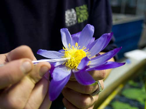 This Nymphaea hybrid is known as Kew’s stowaway blues. It was developed to provide longer flowering periods for public display.