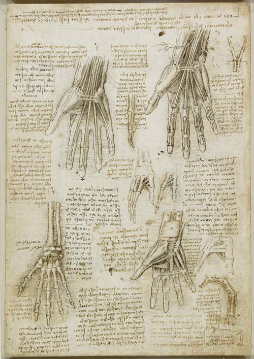 Stripping back the layers of a hand, da Vinci was inspired to write: