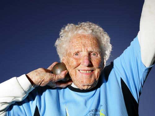 Frith, from Brisbane, Australia, is a great-grandmother and is currently in serious training for the Sydney 2009 World Masters Games in October.