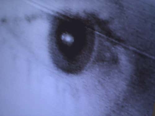 Inside the scanner. This is my eye, captured by a mini TV camera mounted inside the machine. This camera isn’t a normal fixture but was installed by the TV production company filming the experiment for a documentary. The pupil is widely dilated, one of the outward signs I have been given MDMA. The inward signs are pretty obvious too.