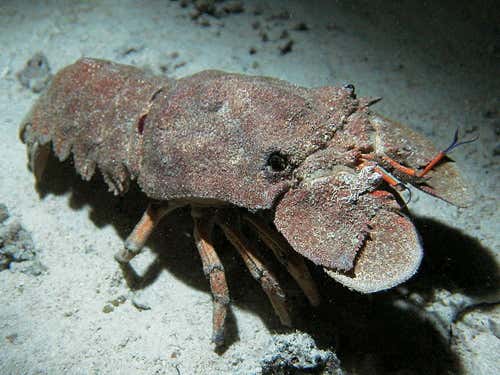 Lobsters of the Scyllaridae family, such as this Scyllarides latus, are called slipper lobsters because of the flat, expanded antennae that extend from their heads, giving them the look of your favourite floppy footwear. Their compressed appearance has also caused them to be named the “flapjack” and the “bulldozer” lobster.