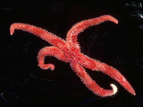 This elegant starfish (Luidia sarsi) has five gently tapering arms and a velvety texture. It grows to 20 centimetres across and prowls the sands of deep waters around Europe, from the Mediterranean to Norway.