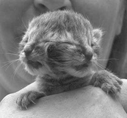 The kitten in this photograph has diprosopia, a rare congenital malformation that duplicates facial features.